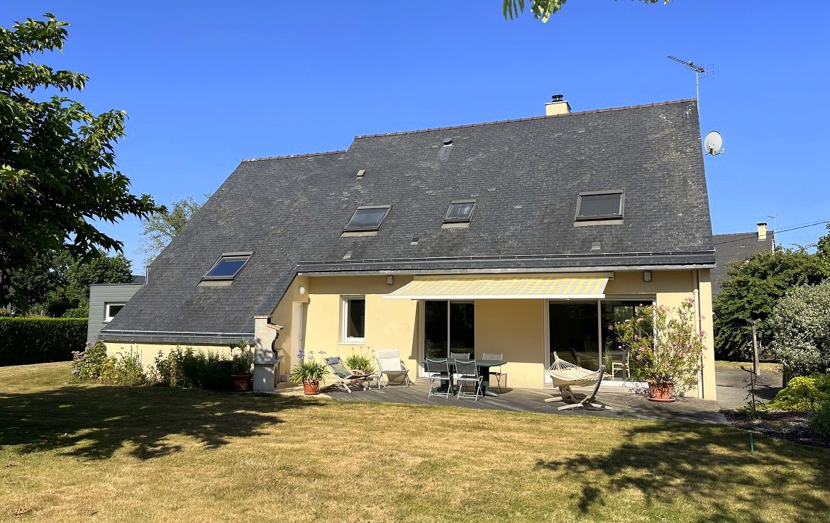 Toiture en ardoises naturelles, menuiseries en alu double vitrage, volets roulants électriques programmables, chauffage électrique programmable, assainissement tout à l’égout