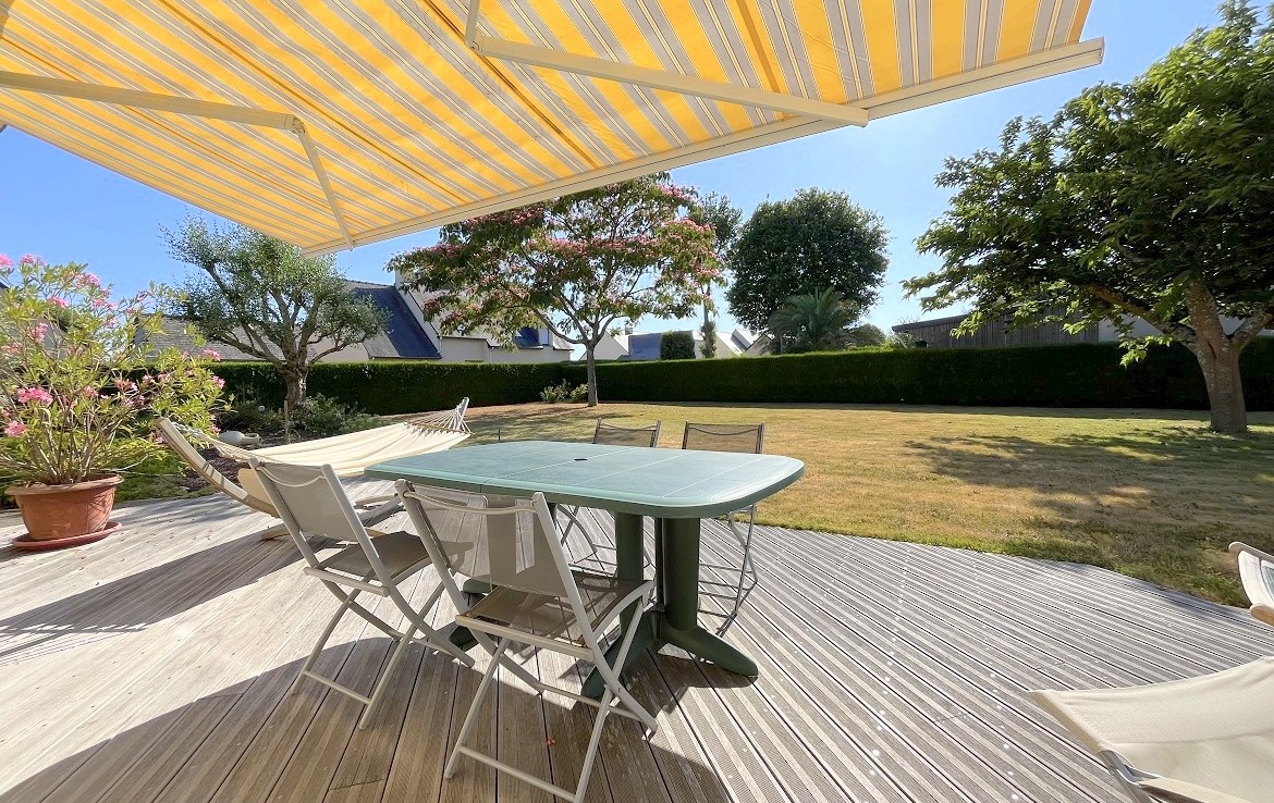 Terrasse parfaitement exposée avec store banne.