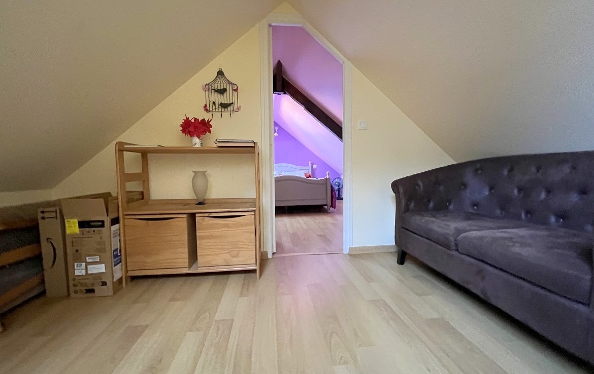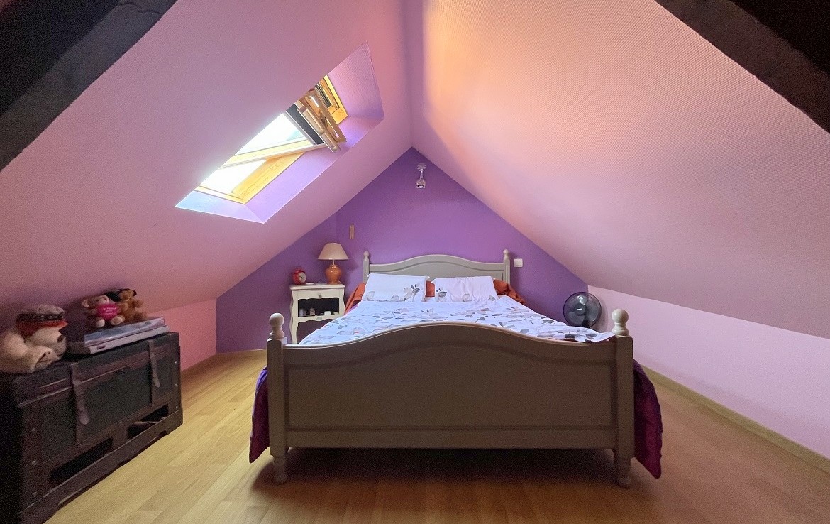 A l’étage, retrouvez une chambre et une salle d’eau avec wc et au second étage, un petit pallier/mezzanine et une chambre mansardée.