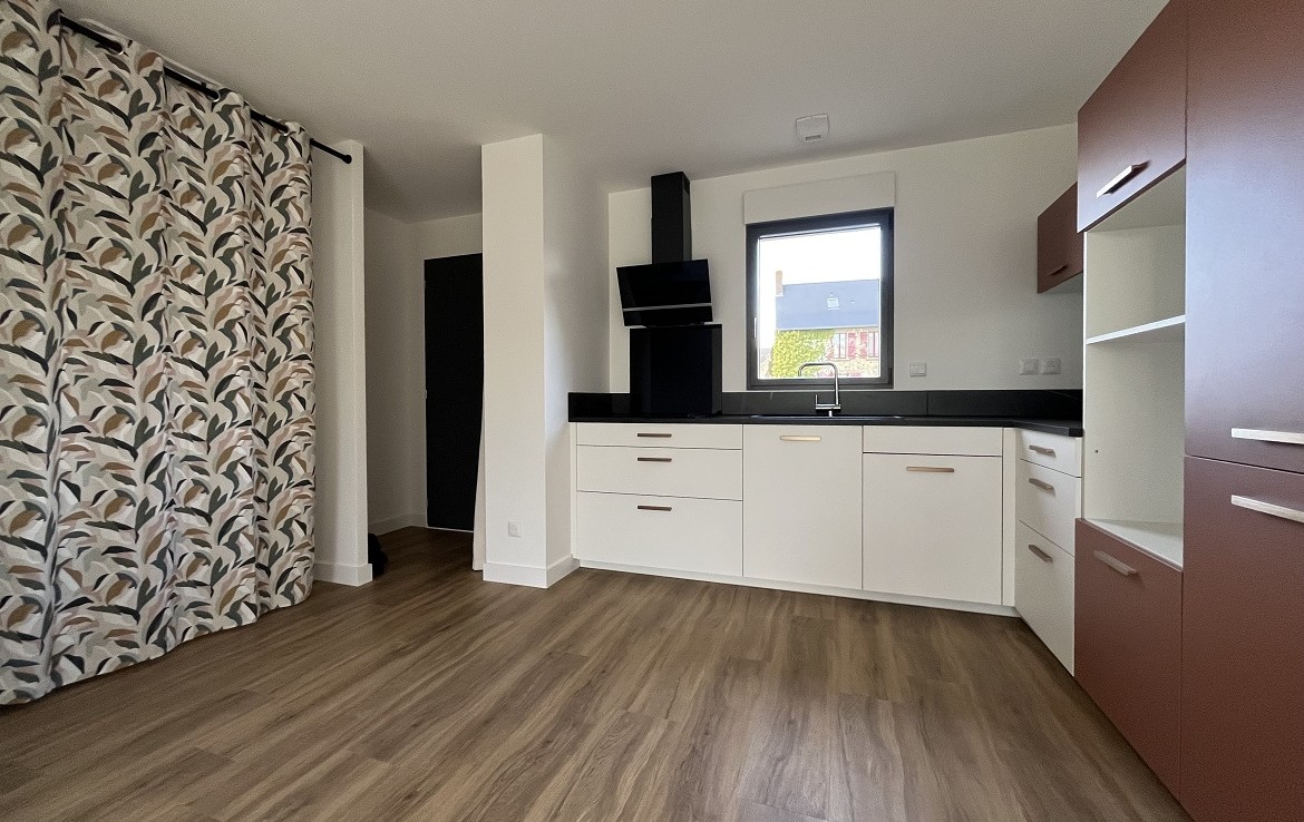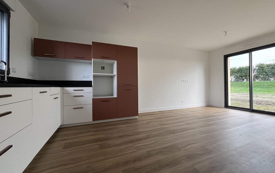 Découvrez cette jolie maison neuve de 2025, de 50m² , plain pied, offrant une pièce de vie avec cuisine aménagée, deux chambres avec placards, salle d’eau et wc.